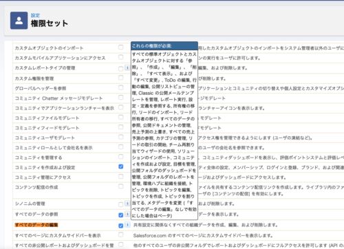 一般ユーザへのすべてのデータの編集権限付与を試してみました。基本的に一般ユーザには設定画面を表示する必要はないと思っているので、すべてのデータの編集権限や設定・定義を参照する権限などは付与しない方がいいと思っているのですが、仮に権限を付与…